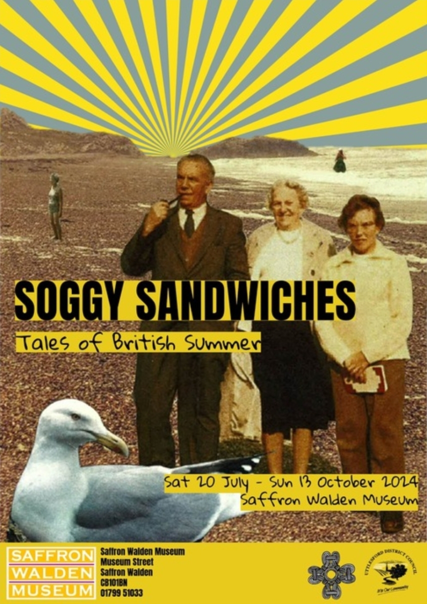 The Summer Exhibition has just launched at Saffron Walden Museum, bringing back memories of past holidays. “Soggy Sandwiches: Tales of a British Summer” is an exhibition full of colour and joy, offering the perfect way to enjoy those sometimes less-than-glorious summer afternoons. The exhibition provides an insight into how the “classic” British summer holiday has evolved from the travels of the rich to the wanderings of every person, how society has shaped holidays, and how the holiday spirit has changed society. Simon Hilton-Smith, the exhibition curator, stated that he and Charlotte Pratt, the exhibition’s designer, hoped to create a “scrapbook-like aesthetic” that encourages visitors to truly “engage with the objects on display.” He hopes that each visitor will be able to interact with the exhibition on a personal level, “creating their own unique experience and reminiscing about past holidays”. The vibrant displays are intended to prompt visitors to share their stories with others, creating an autobiographical experience that can be passed down through generations. The exhibition aims not to be a pedagogical display of facts presented in a chronological narrative but to “revive memories through visual and audio stimulation”, says Simon. Indeed, the exhibition is a real feast for the eyes, with a hanging boat, seabirds adorning the walls, and even an installation by artist Laura Joan Smith, whose work combines photographic stills and audio separated not in space but through time. Soggy Sandwiches: Tales of British Summer provoke memories, and you want to share your holiday experiences with others. So why not visit and create some new memories of your own? The exhibition is held throughout the summer holidays at Saffron Walden Museum, from July 20th until October 13th. The museum’s permanent collections and grounds, including medieval castle ruins, offer the perfect day out for the whole family. Saffron Walden Museum: The Little Museum with the entire world inside.